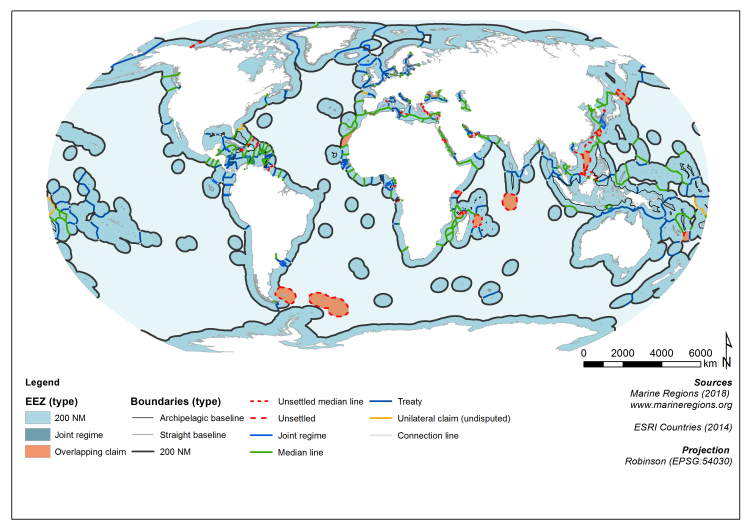 However, several marine territorial disputes exists when it comes to EEZs. Such disputes can only be solved by international agreements in accordance with UNCLOS and resolution is complicated and slow. Projects such as the Ocean Health Index can only use agreed boundaries.